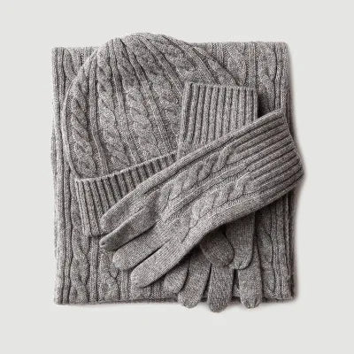 • 3-piece winter set• Wool & cashmere blend• Cozy knit texture• Elegant geometric pattern
