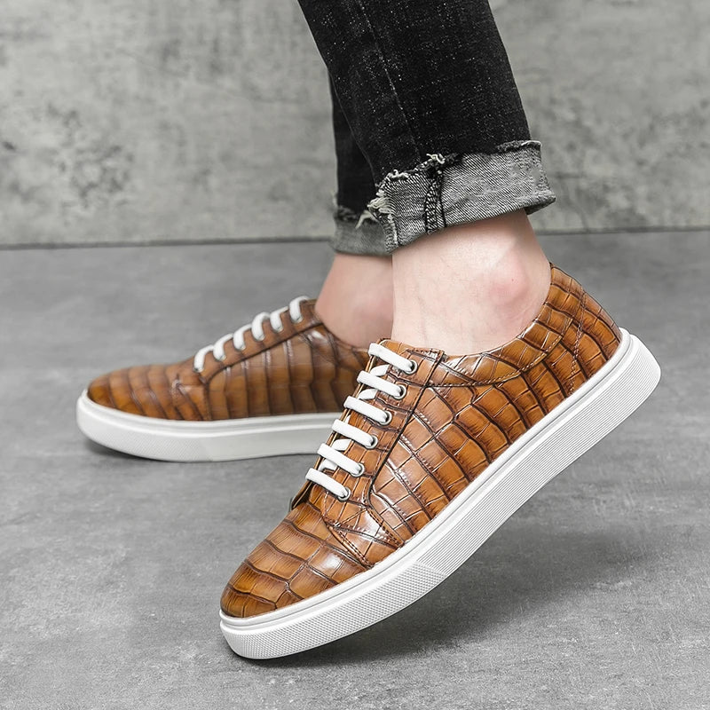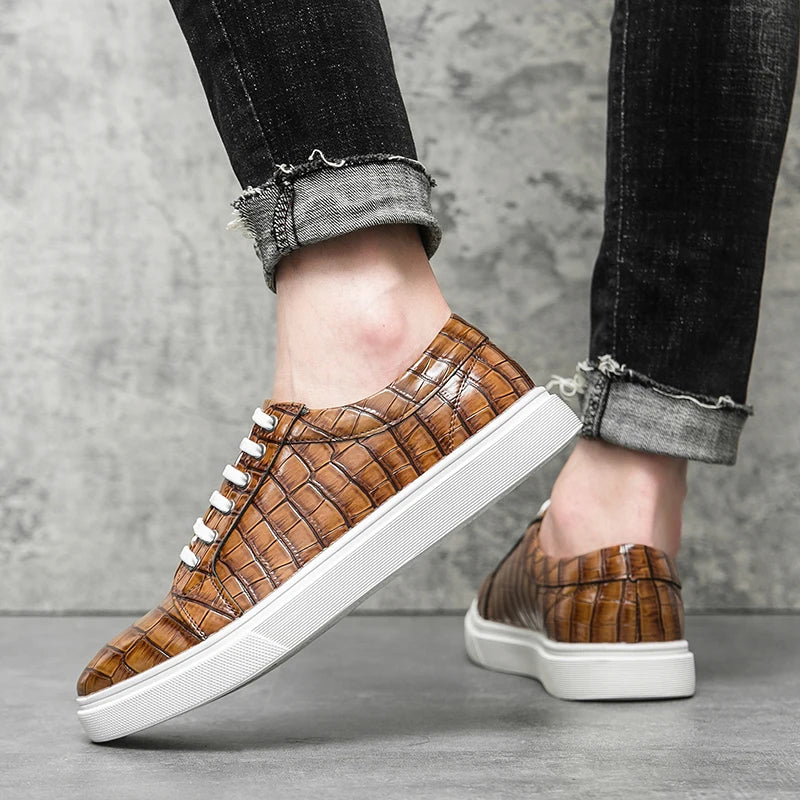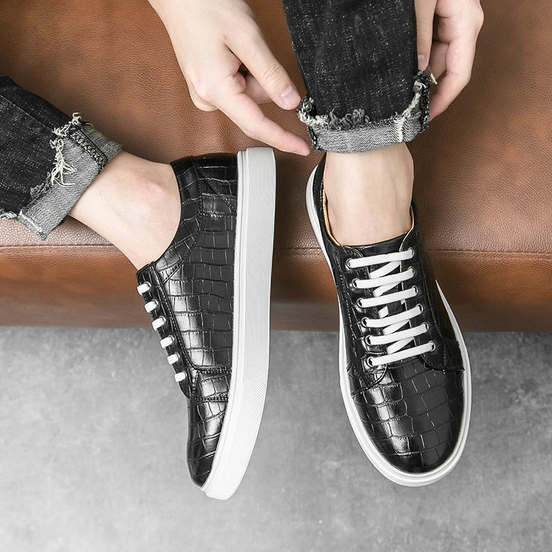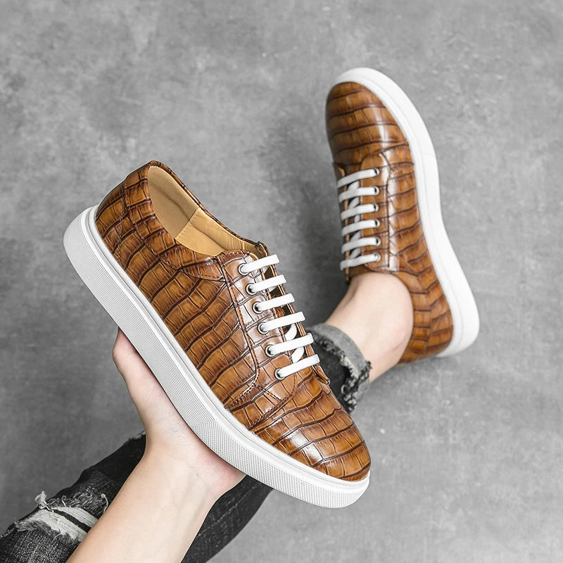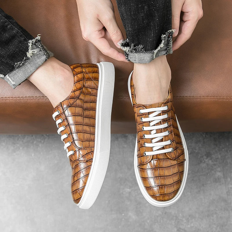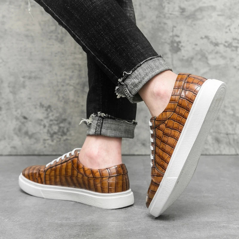 Stylish men’s casual sneakers with a unique alligator pattern design, combining comfort and elegance for everyday wear. Perfect for office, leisure, or city walks.