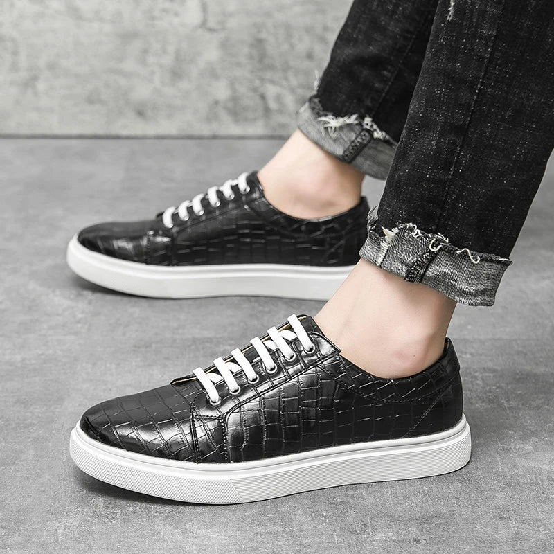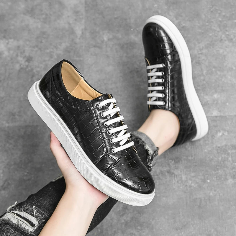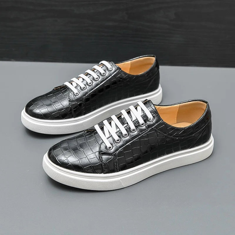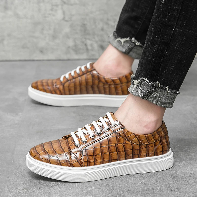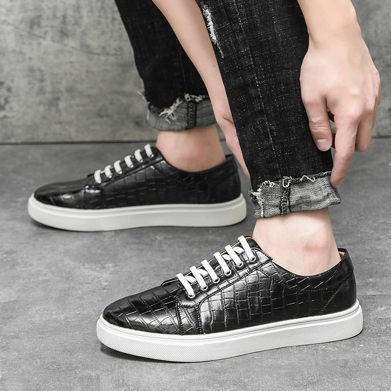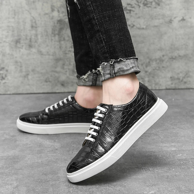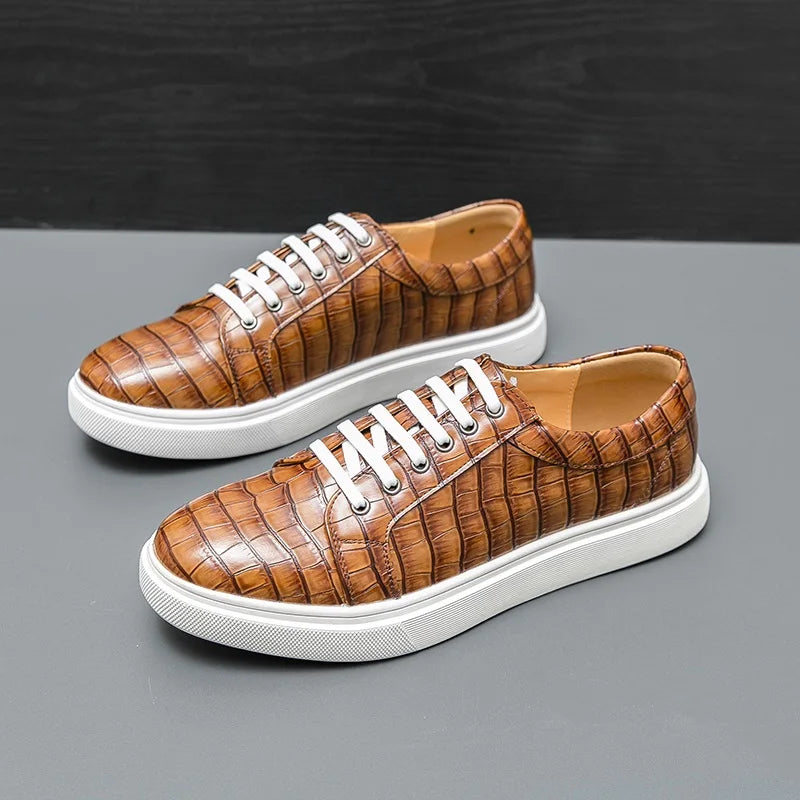 Stylish men’s casual sneakers with a unique alligator pattern design, combining comfort and elegance for everyday wear. Perfect for office, leisure, or city walks.