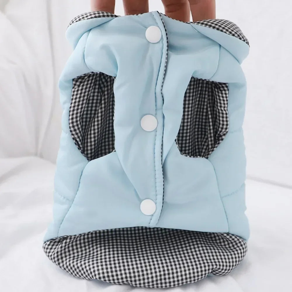 A soft and cozy pet jacket designed to keep small dogs and cats warm and adorable during chilly days.